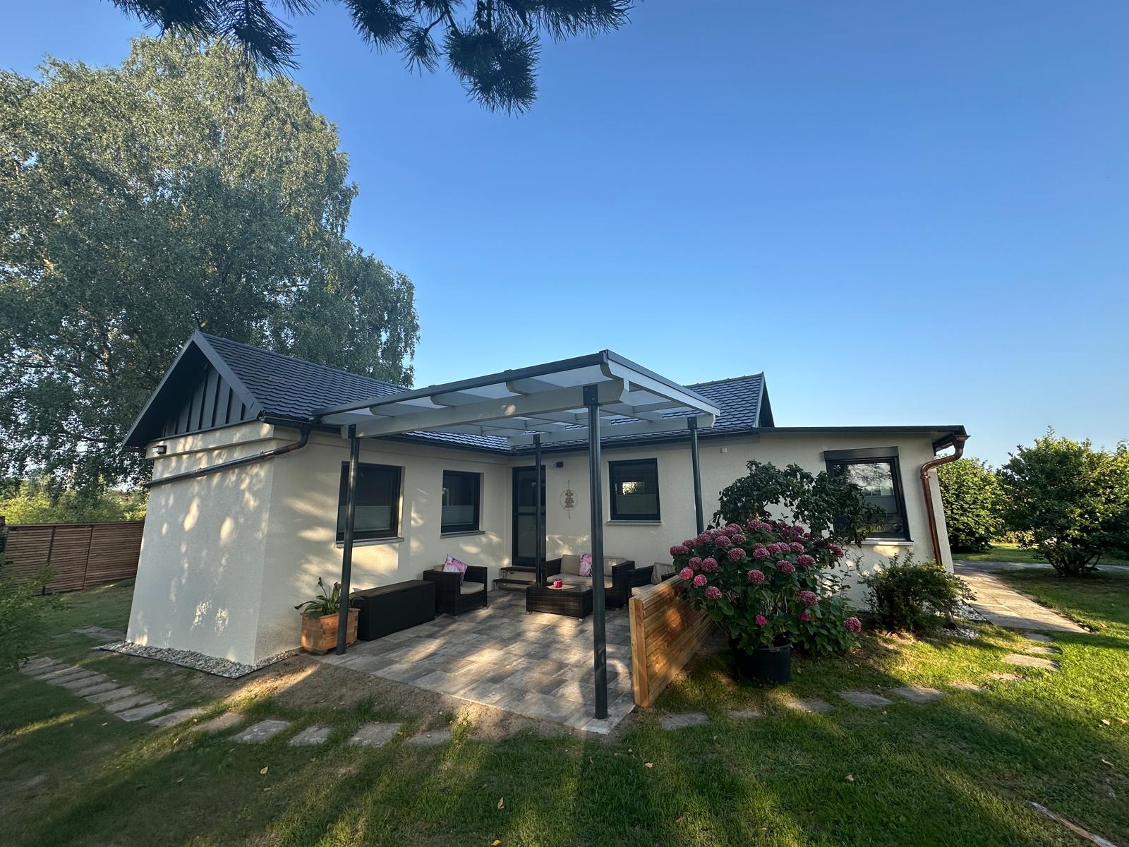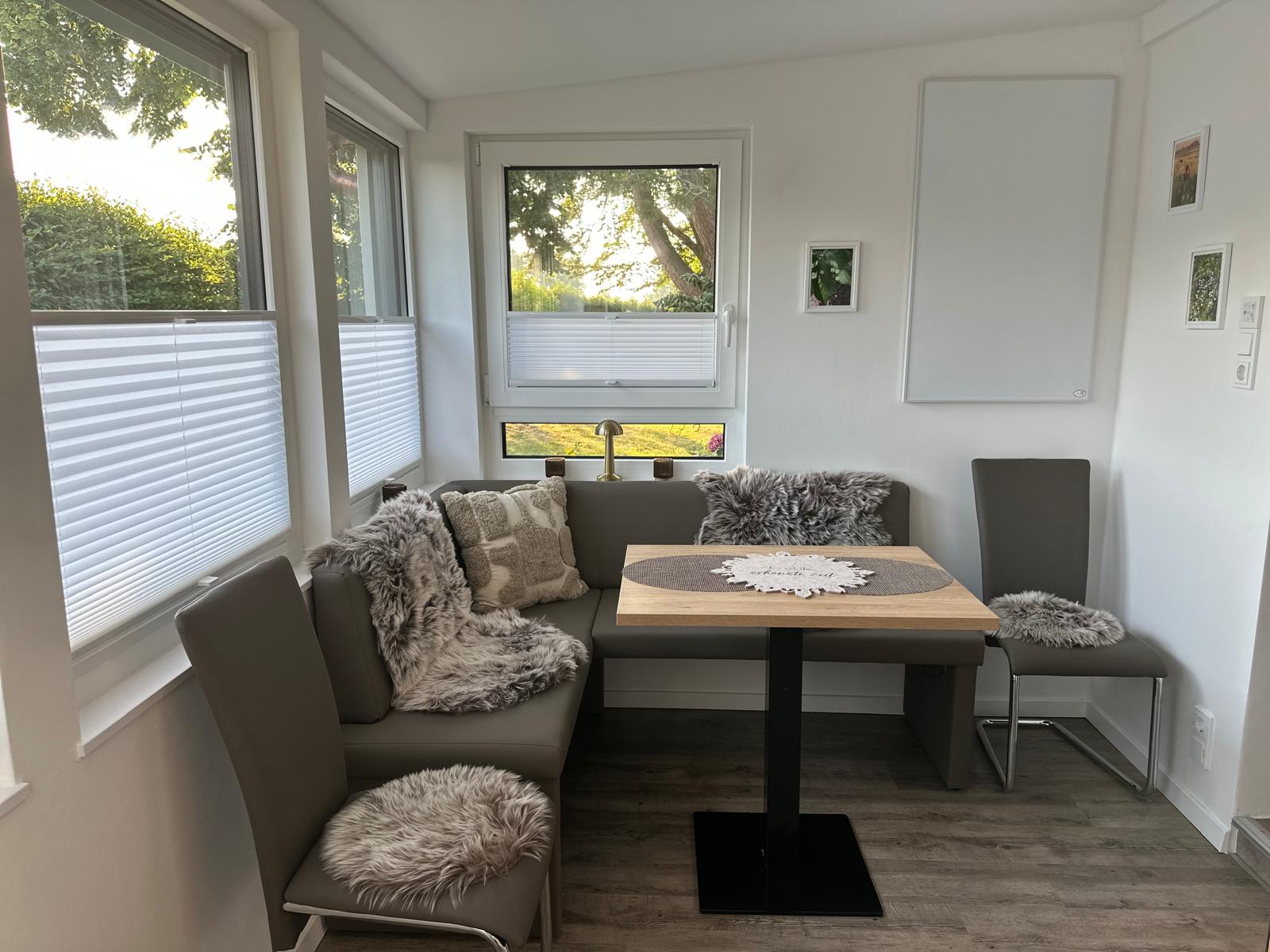 Das Haus ist liebevoll eingerichtet und besticht durch Naturtöne die eine harmonische und entspannte Stimmung schaffen. Ein einladender Eingangsbereich, eine Essecke, eine Küche mit angrenzendem Wohnbereich, ein Badezimmer mit begehbarer Dusche und ein Schlafzimmer mit Doppelbett machen Ihren Aufenthalt perfekt.